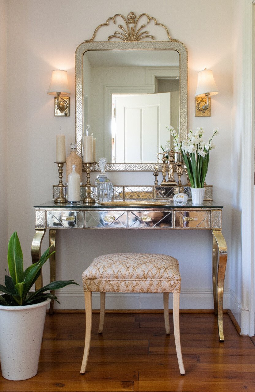 Channel the glamour of the Art Deco era with a stylish vanity. Think mirrored surfaces, geometric patterns, and metallic accents.