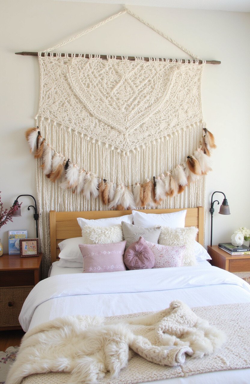 This design adds texture and interest to a bedroom, making it feel cozy and inviting. It’s both decorative and meaningful.