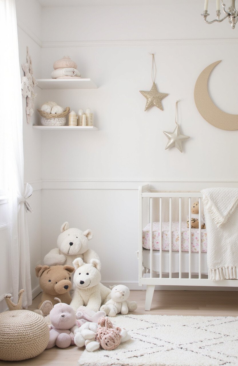 Choose gentle colors and soft fabrics for an inviting feel. Costs can be kept low with DIY decor and simple starry accents.