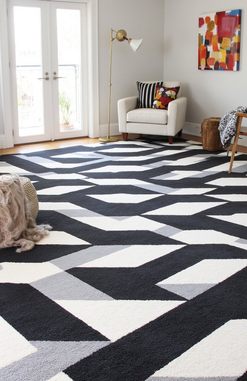 Add a modern twist to your floors with geometric illusion rugs. These rugs create eye-catching patterns that appear three-dimensional.