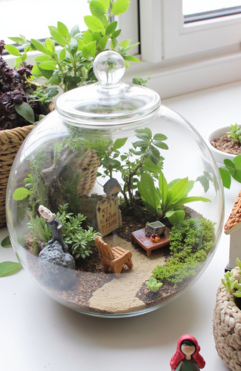 Bring a touch of magic to your home with a fairy garden terrarium. Tiny plants, miniature furniture, and little fairy figures create a whimsical world in glass.