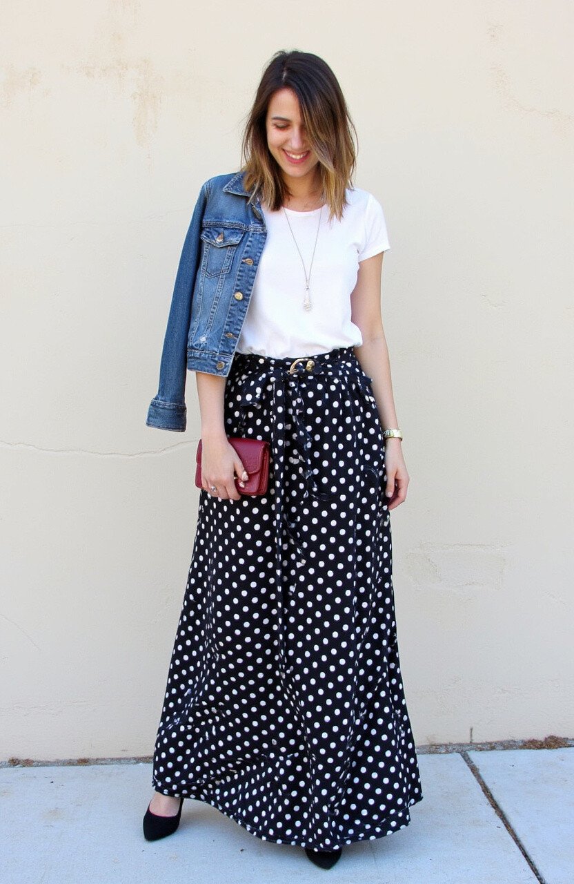 Flowy and free, a polka dot maxi skirt is your ticket to effortless elegance. It drapes gracefully, allowing for movement and comfort, perfect for a day out or a casual evening. Imagine pairing it with a simple white tee or a cropped denim jacket.