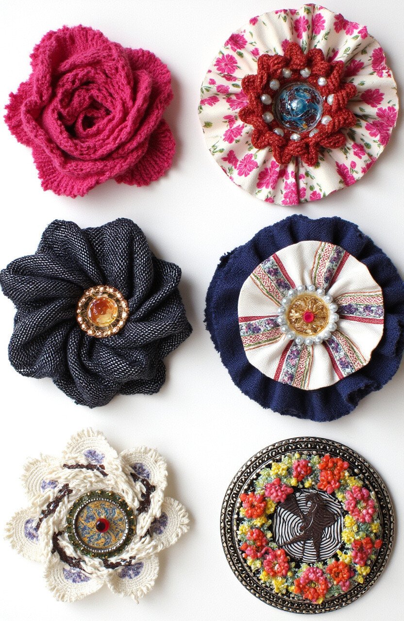 Design eye-catching brooches from scrap fabric and old jewelry. These brooches can add a statement to jackets, bags, or hats. They’re a fantastic way to recycle and accessorize.