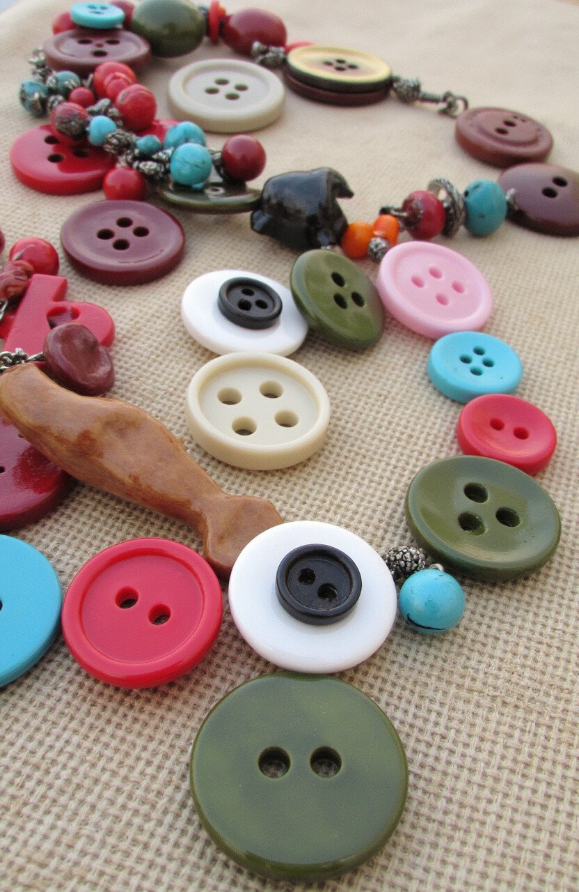 Make beautiful jewelry from old buttons. Necklaces, bracelets, and earrings can be crafted from buttons of different sizes and colors. This is an excellent way to repurpose buttons from clothes that are no longer wearable.