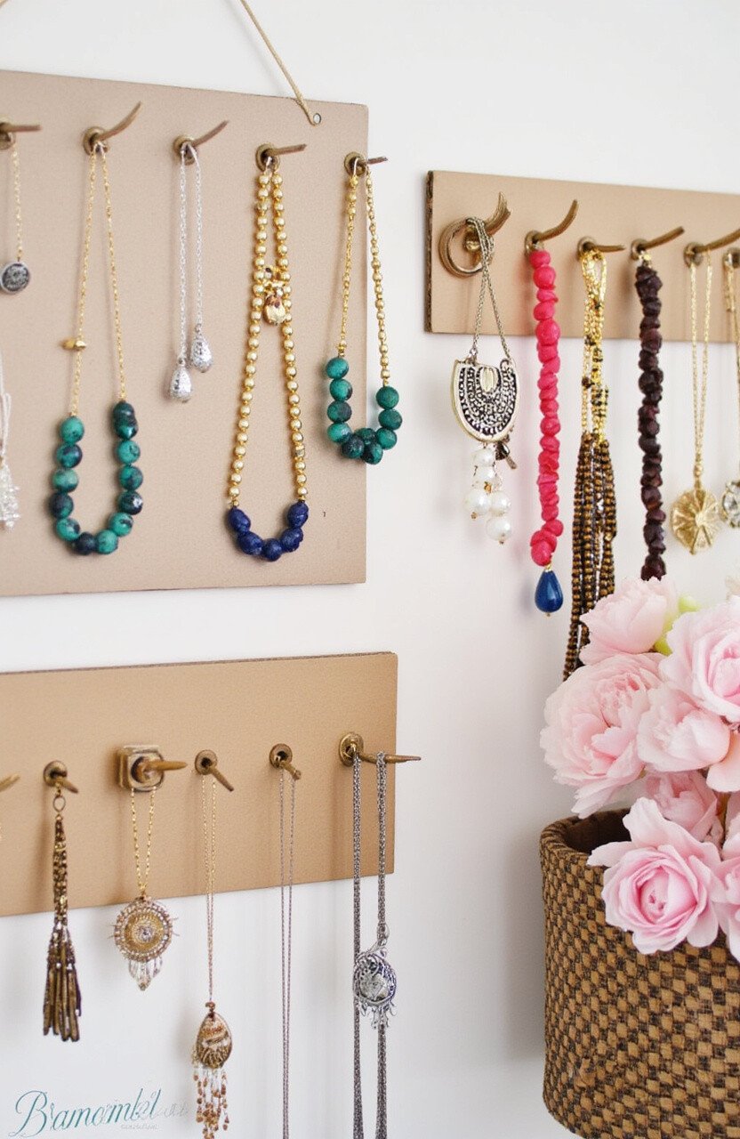 Decorate the cardboard with paint or fabric for a personalized touch. It’s an inexpensive way to keep your jewelry tidy and on display. This idea is both creative and functional.
