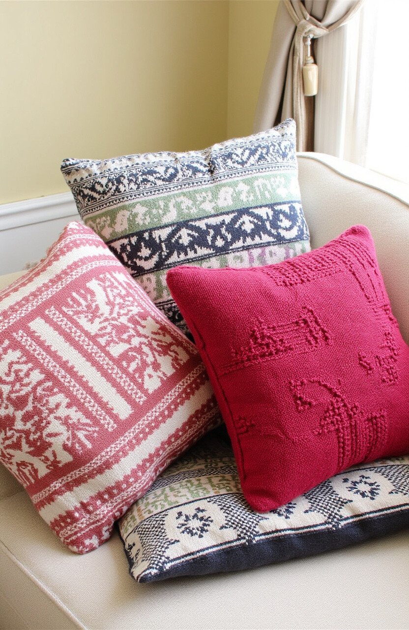 Transform old sweaters into cozy pillow covers. These covers add warmth and texture to any living space. They’re perfect for a cozy home atmosphere.
