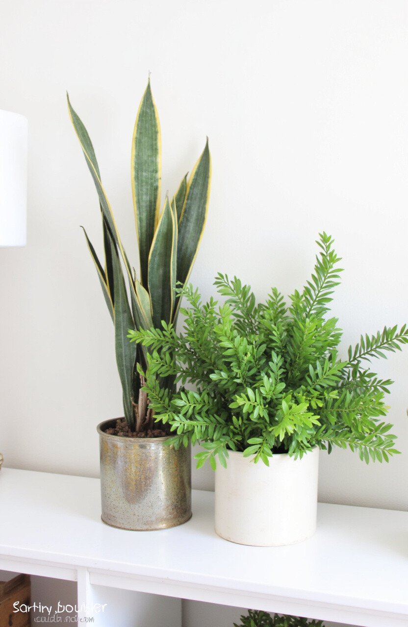 Greenery is a wonderful way to bring life into your home. Use two matching planters to display your favorite indoor plants. This idea can bring symmetry to a shelf, console table, or entryway.