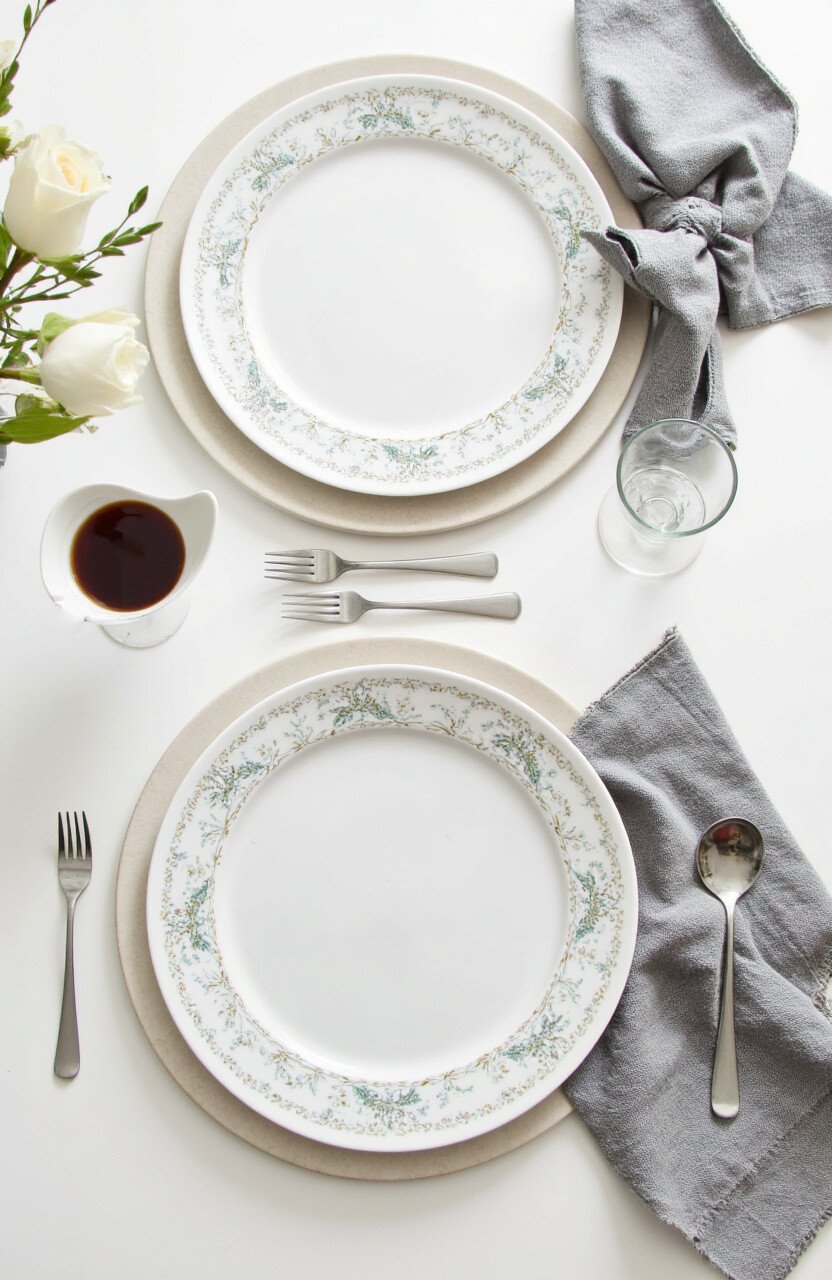 Set your dining table with two matching place settings for an intimate and cohesive look. This approach is perfect for small gatherings or everyday meals. Use coordinating plates, napkins, and glasses for a harmonious effect.