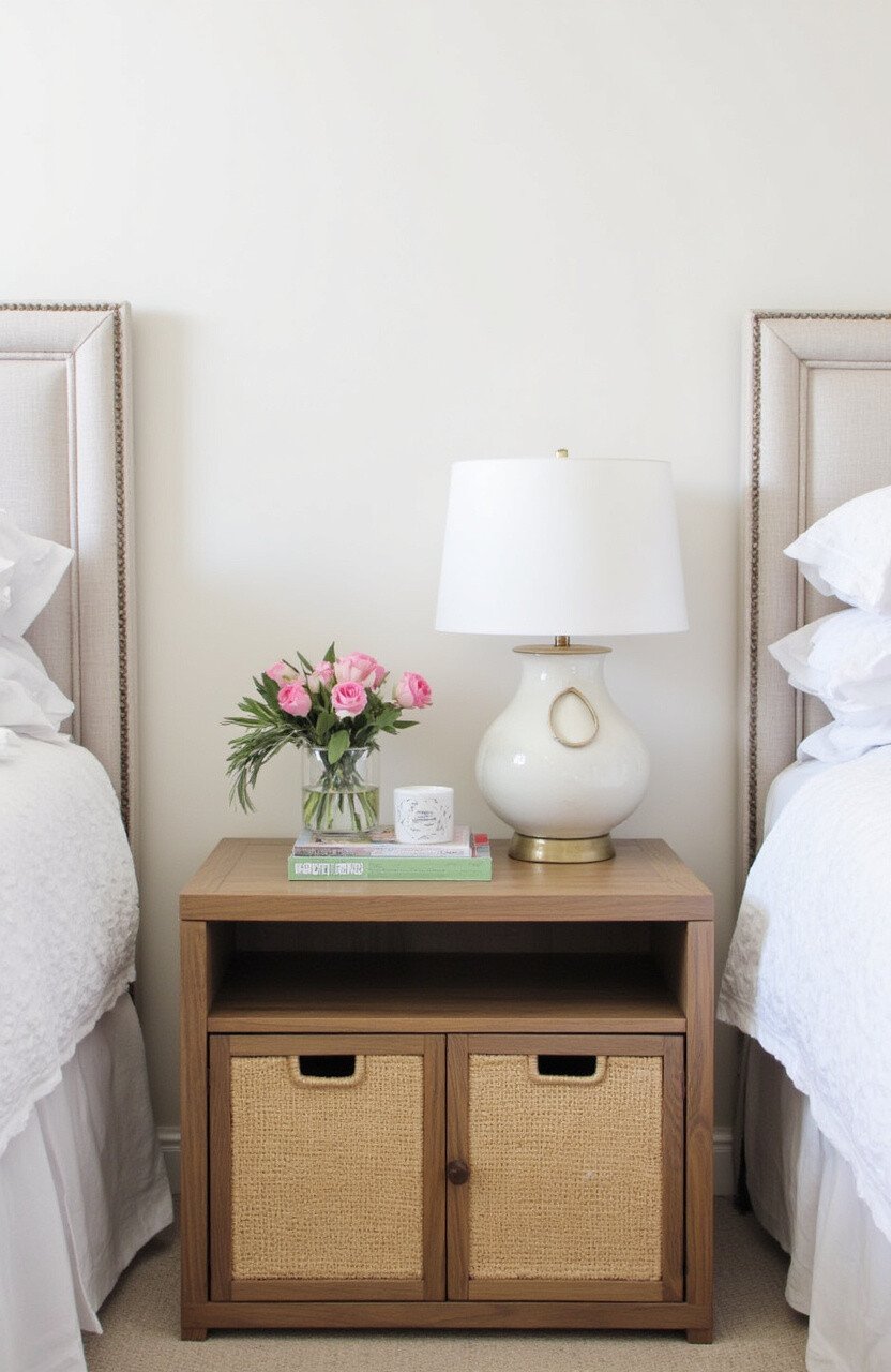 Create a balanced and harmonious bedroom with two identical bedside tables. They provide symmetry and offer practical storage for nighttime essentials. This setup is ideal for master bedrooms or guest rooms.