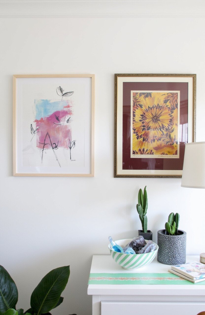 Hanging two pieces of artwork side by side can create a stunning visual impact. Choose prints or paintings that complement each other in theme or color. This idea is especially effective for large walls that feel bare or unbalanced.