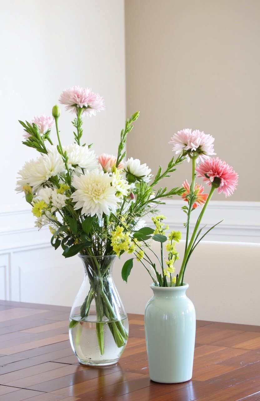 Imagine a pair of identical vases sitting on your dining room table, each holding a bouquet of fresh flowers. The symmetry of twin vases brings balance and elegance to any space, making it feel both organized and welcoming. Opt for clear glass or ceramic in neutral tones to ensure the flowers take center stage.