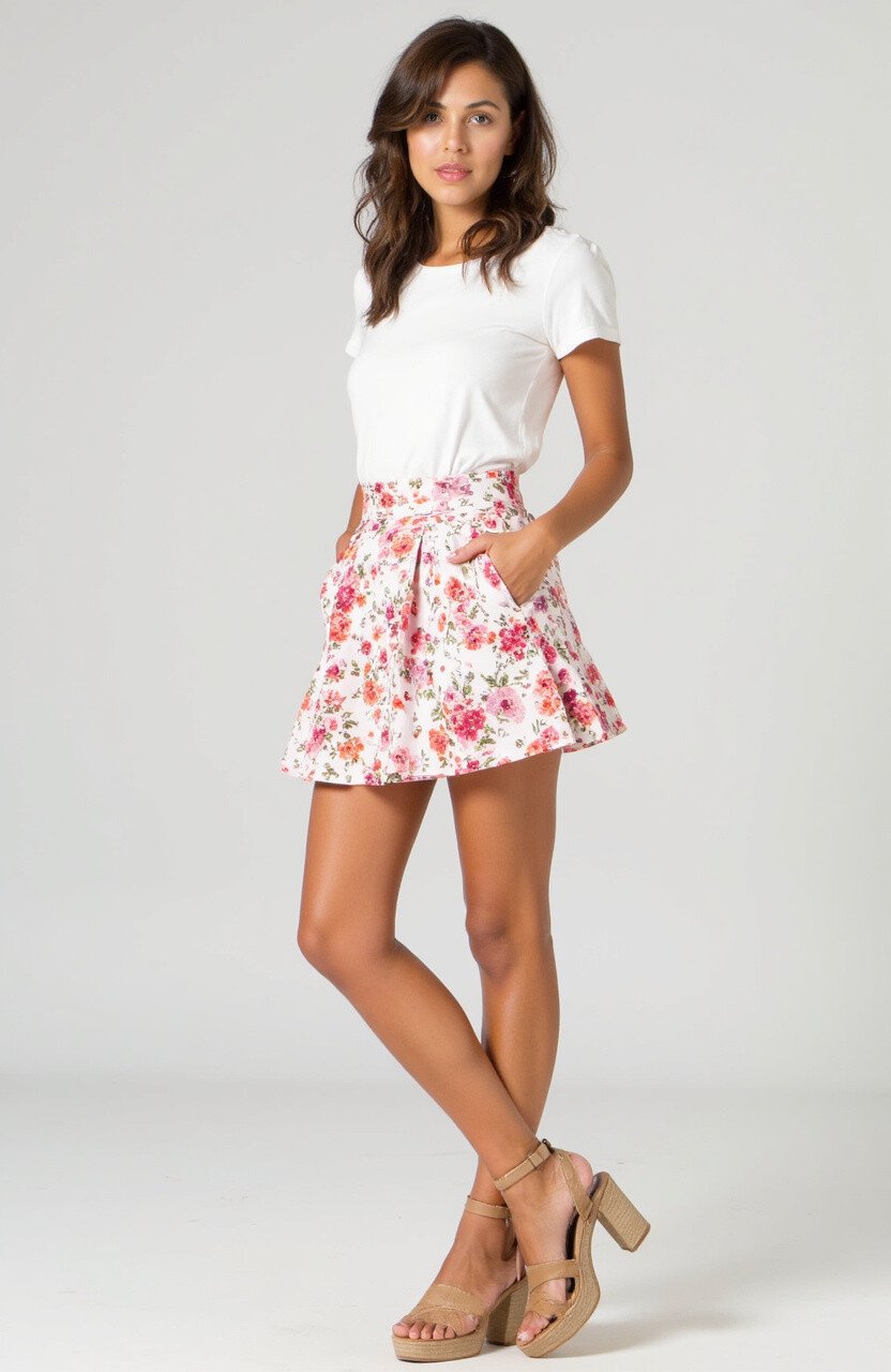 Pair it with a simple white tee for balance. The floral patterns make it unique and lively. This skort is ideal for sunny days and picnics.