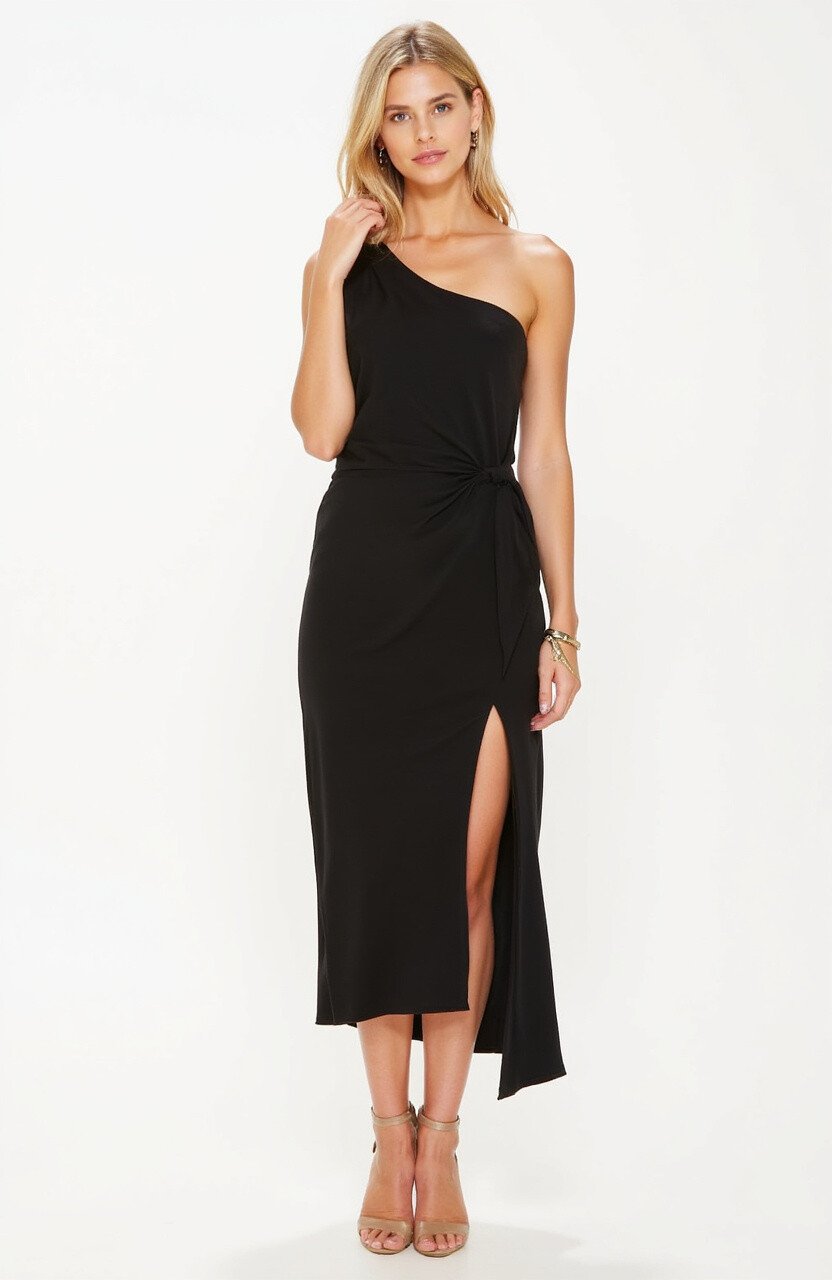 Stand out with an asymmetrical slip dress. The unique cut adds intrigue and a modern twist to your outfit.