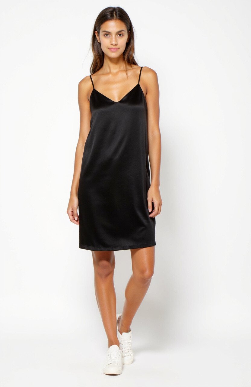 Nothing says chic quite like a classic black satin slip dress. It’s the epitome of timeless elegance, perfect for any occasion. Pair it with strappy heels for a night out or white sneakers for a casual day look.