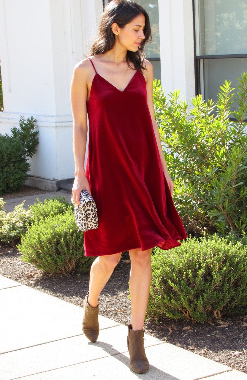 Velvet slip dresses are all about luxurious texture. They’re warm and cozy, making them ideal for cooler weather.