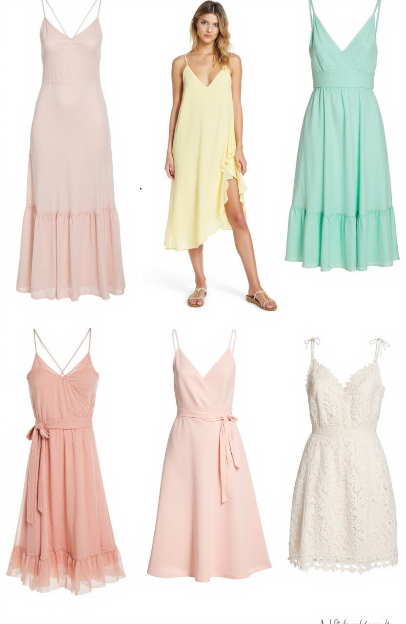 Soft pastel colors create a gentle and sweet look. These slip dresses are perfect for brunch with friends or a casual day out.