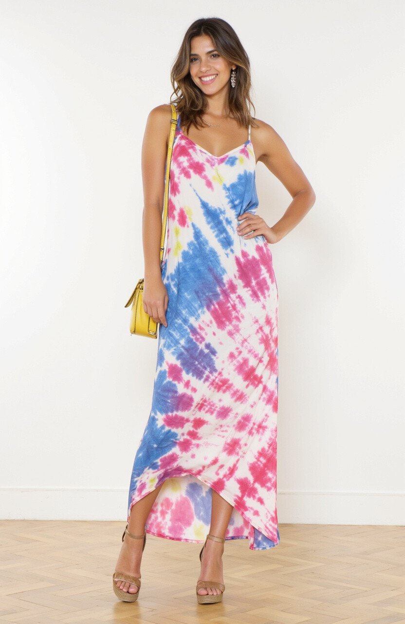 Bring a retro vibe to your wardrobe with a tie-dye slip dress. It’s colorful and unique, perfect for summer festivals.