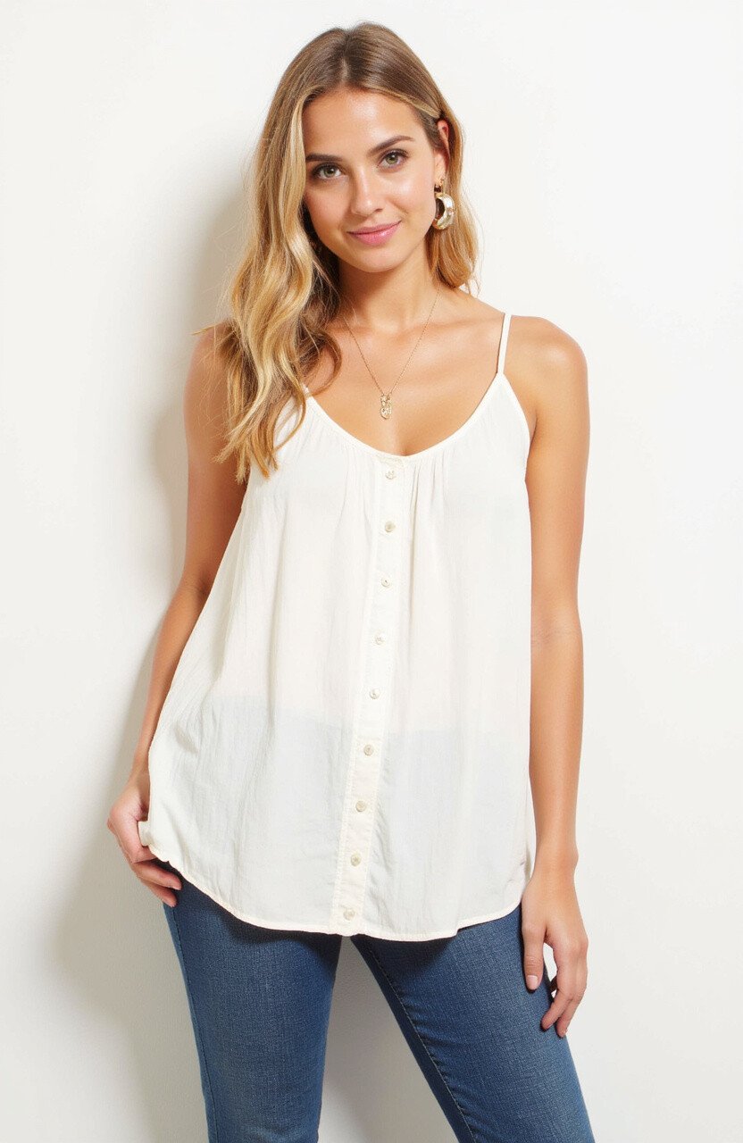 On lazy days, a casual tank top with spaghetti straps is your best friend. It’s comfy, easy, and pairs well with just about anything.