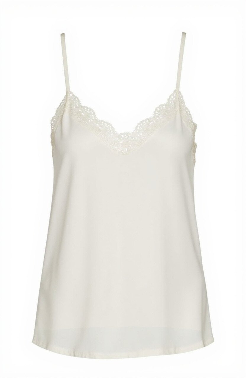 Lace trim adds a romantic touch to a spaghetti strap camisole. It’s delicate, soft, and perfect for layering.