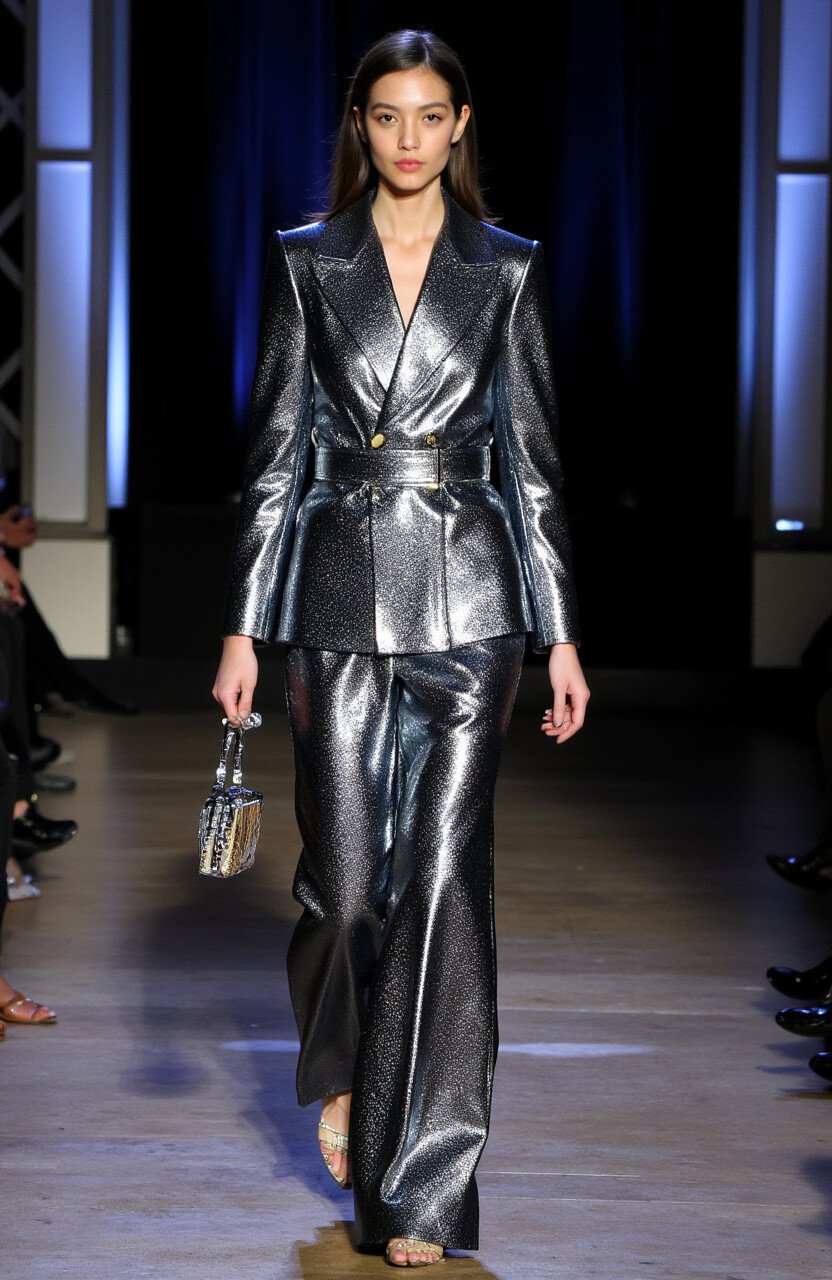 Keep accessories minimal; let the suit do the talking. Metallic suits are both daring and sophisticated.