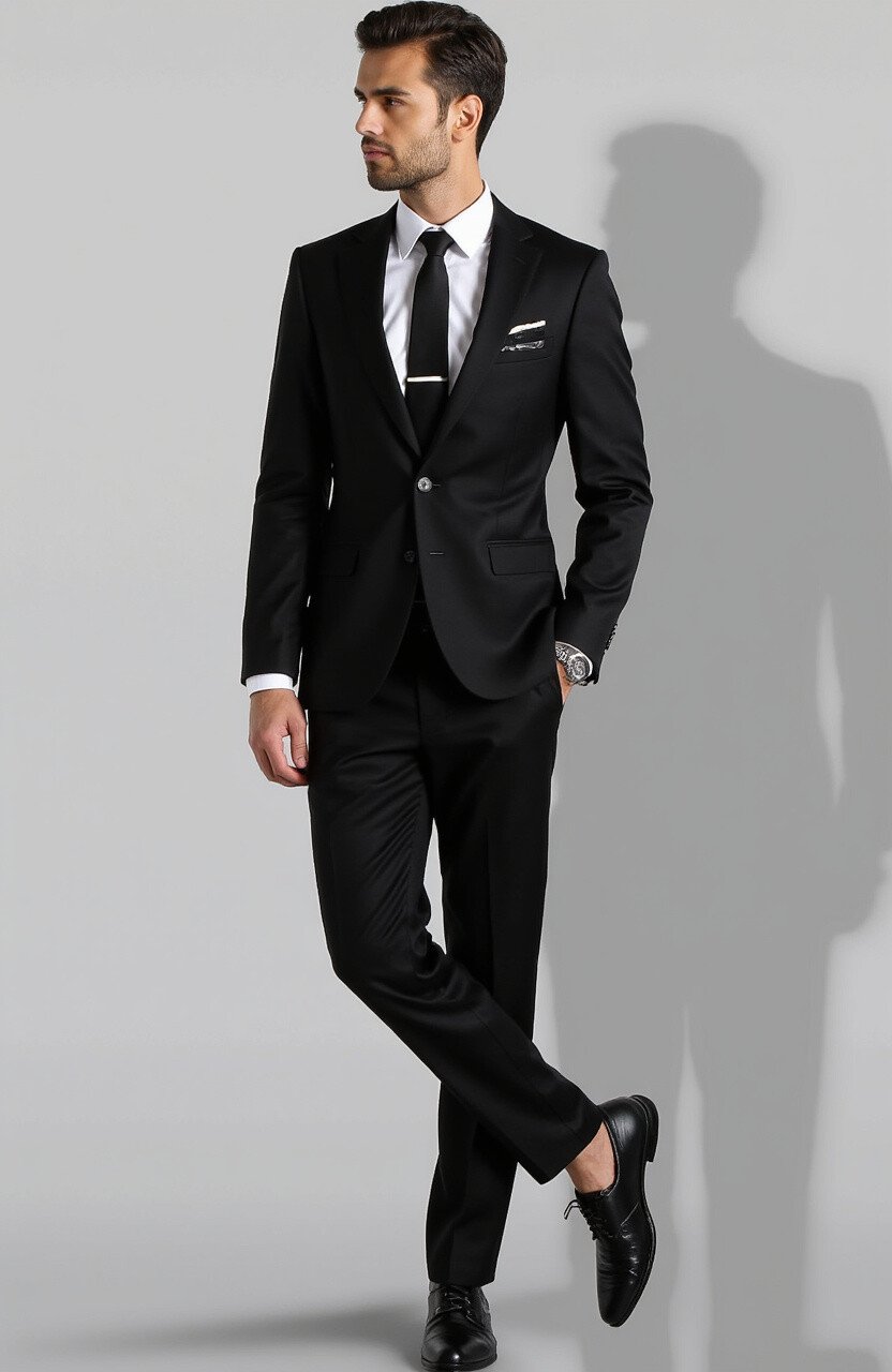 This suit is unique for its simplicity and elegance. It’s perfect for formal events or business settings.