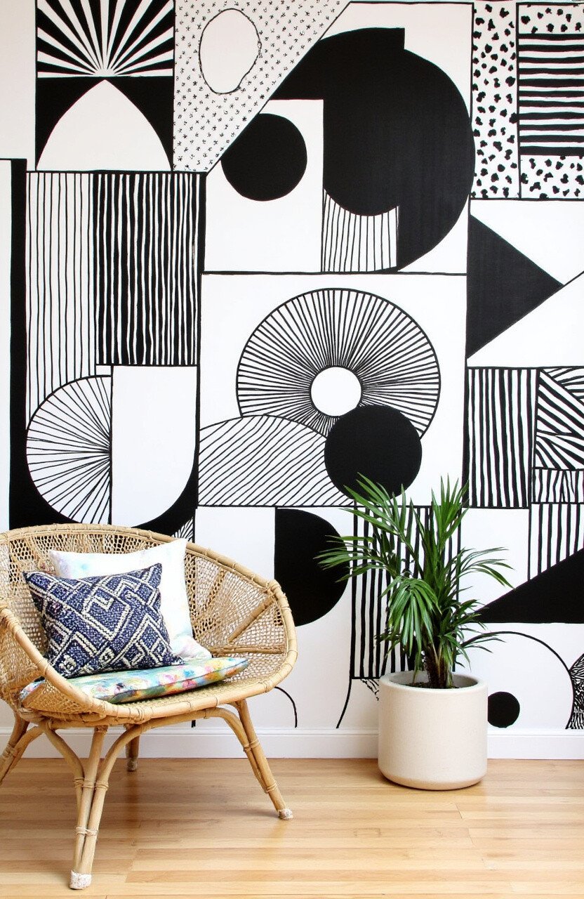 Stick with black and white for a classic look, or go bold with bright colors. Geometric wallpapers are a striking choice for an accent wall.