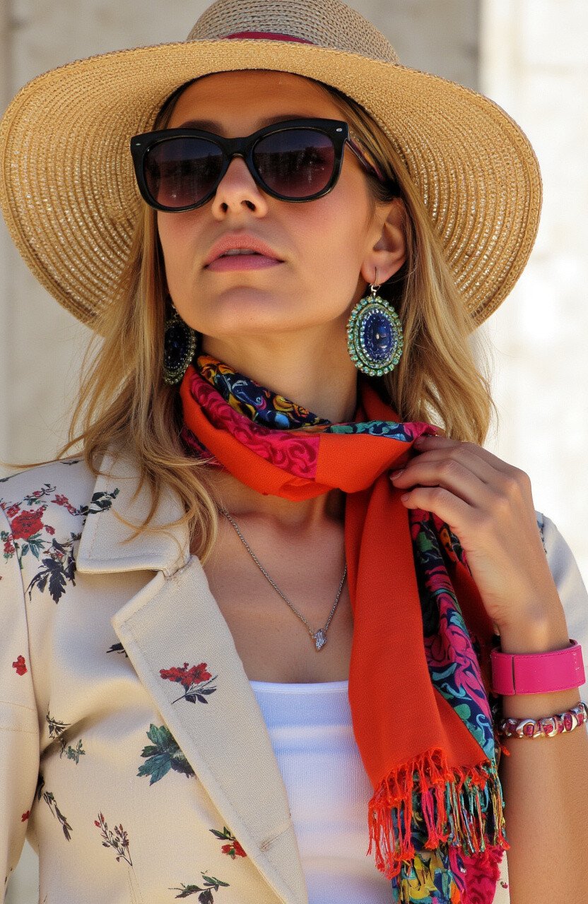 Make a statement with bold accessories. Think oversized sunglasses, chunky jewelry, and vibrant scarves.