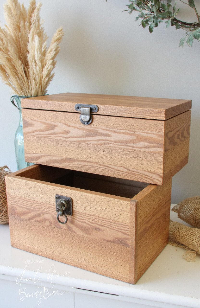 For a natural look, cover your tackle box with wood veneer or contact paper. It gives a rustic feel that’s warm and inviting.