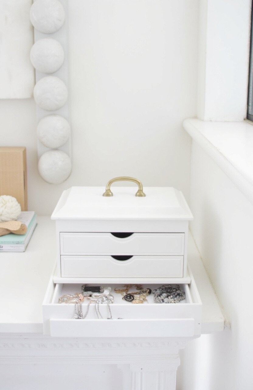 Pair it with metallic accents for a touch of luxury. This idea keeps your space looking tidy and your jewelry easy to find.