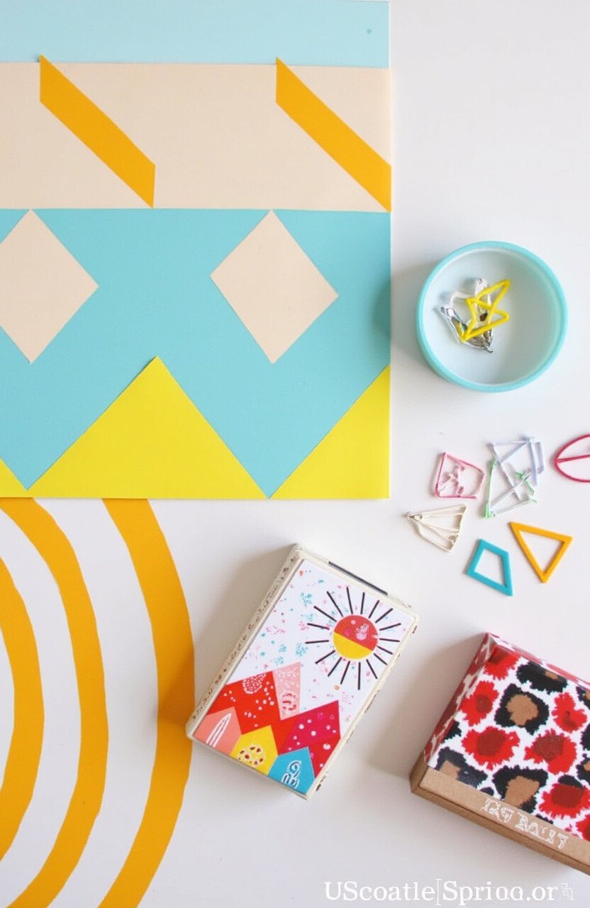 Create bold, geometric patterns with tape and paint. Choose colors that match your room decor. It’s modern and artistic.