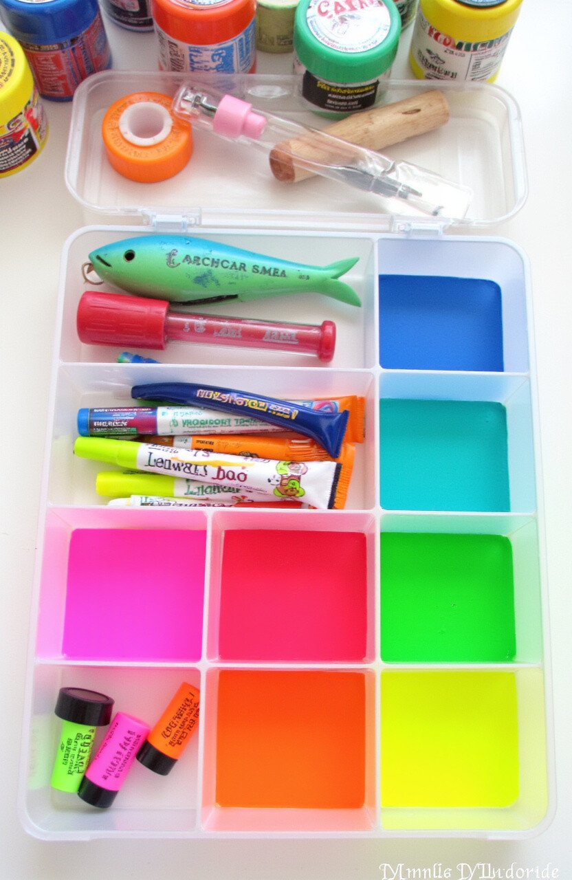 For those who love sparkle, a glitter-covered tackle box is pure joy. Cover the exterior with glitter paint for a shimmering effect. It catches the light beautifully.