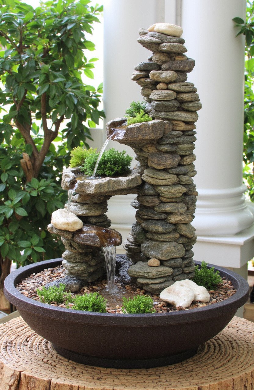 Add a calming element to your space with an indoor water feature. The sound of trickling water can be soothing and stress-relieving.
