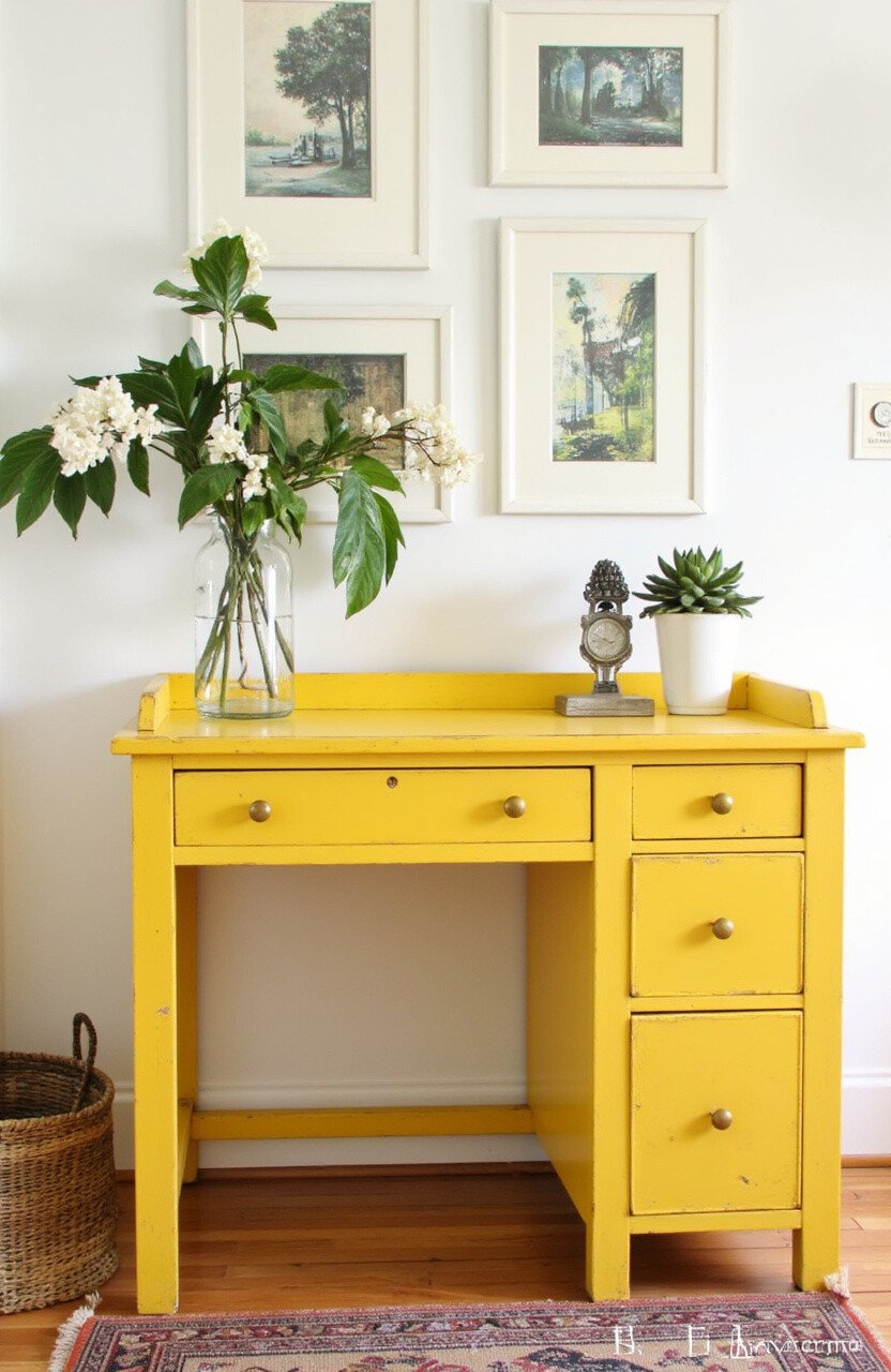 Desks don’t have to be boring. A yellow desk adds personality and makes work feel more inviting.