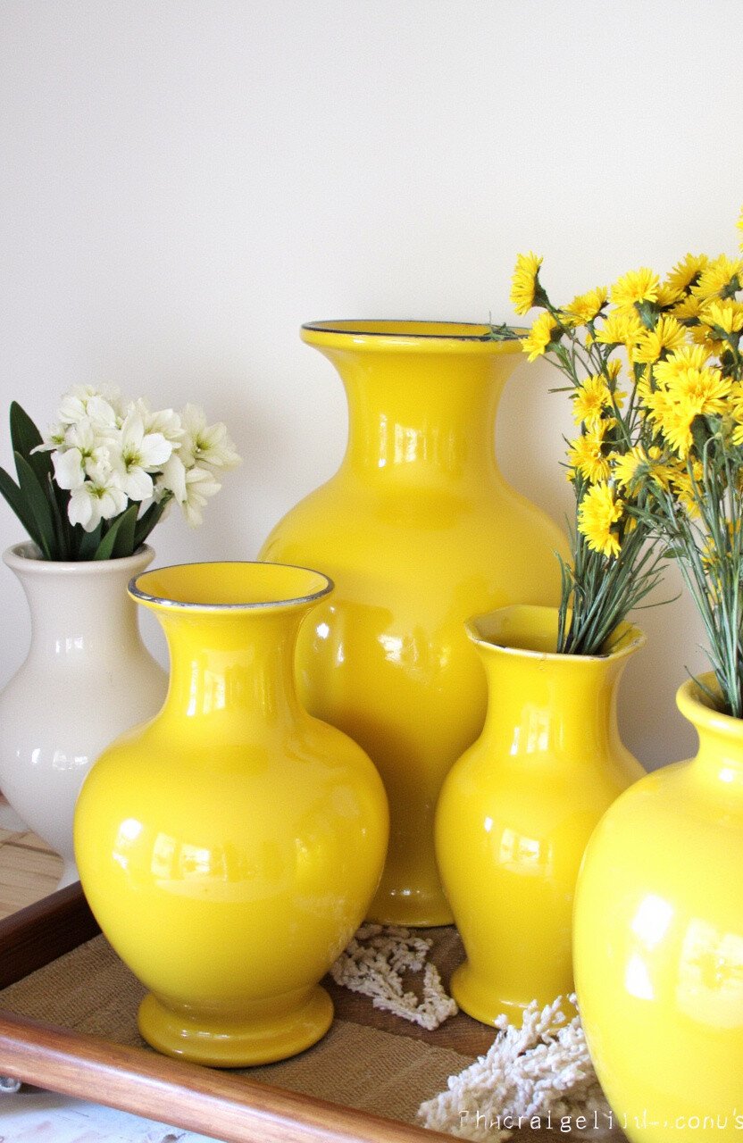 Vases can add a touch of elegance and color. A yellow vase can lift the mood of a room with its cheerful hue.