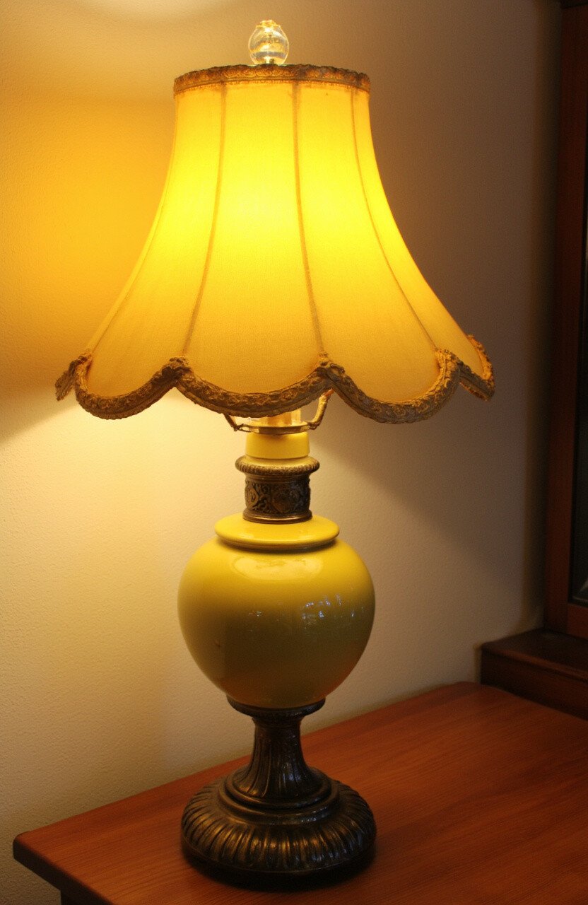 A vintage lamp with a yellow shade can cast a golden glow over any room. Look for one with a unique base, like brass or porcelain, to add a touch of elegance.