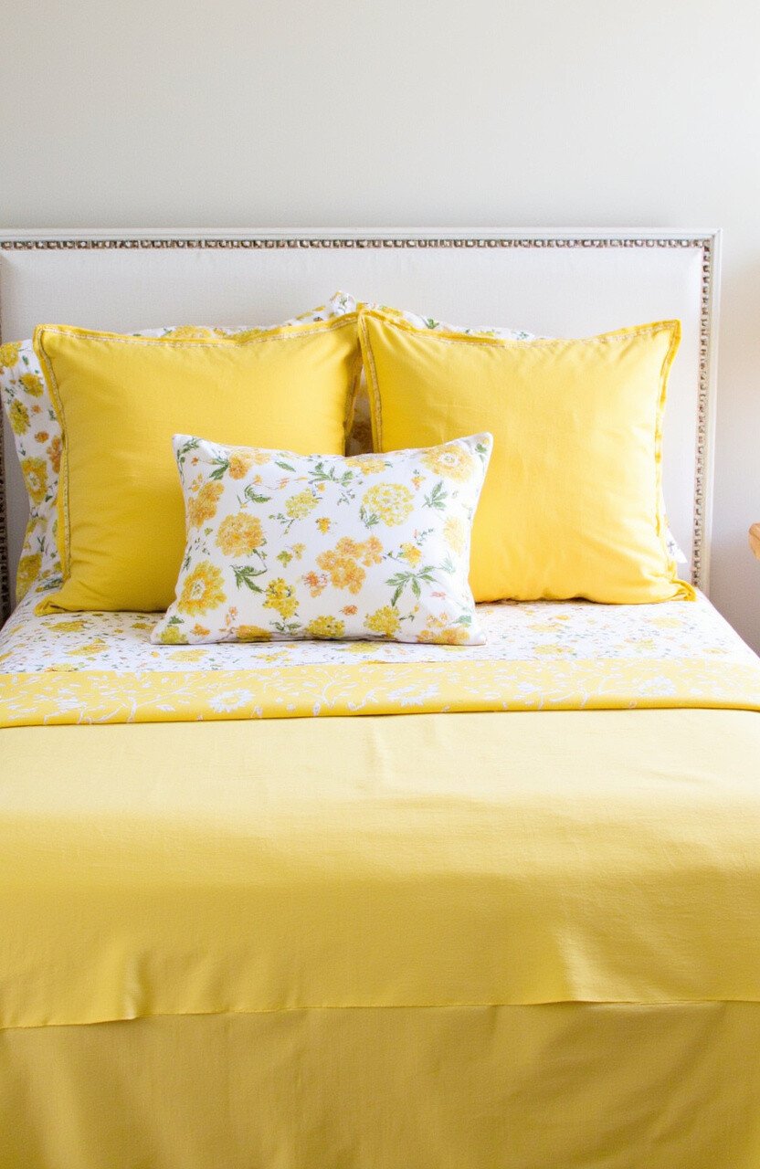 Bedding is an easy way to refresh a room. Yellow adds warmth and can make your bedroom feel like a sunny retreat.