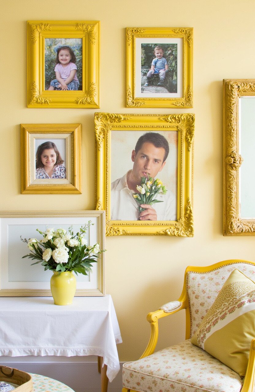 Frames aren’t just for photos; they’re a part of your decor. Yellow frames make your pictures stand out and add warmth to your walls.