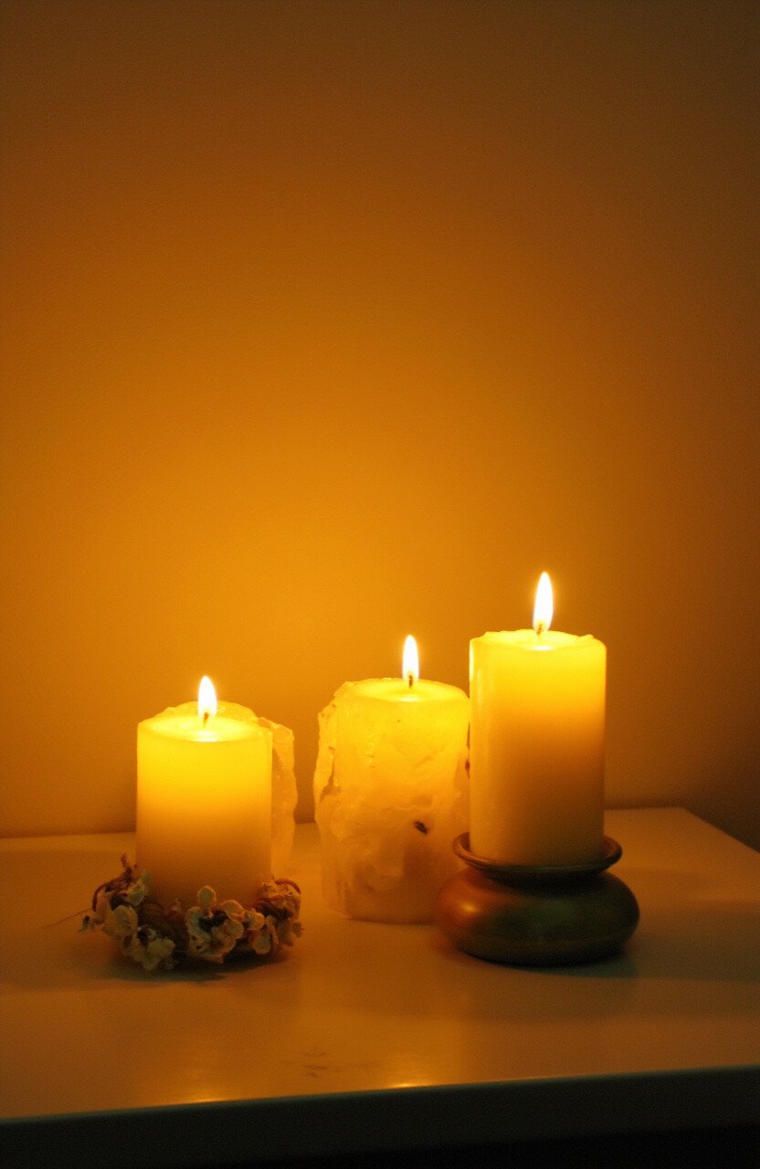 Candles add ambiance and a cozy feel. Yellow candles are perfect for adding a touch of brightness.