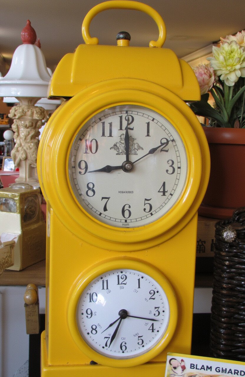 A vintage clock with a yellow face or frame can become an eye-catching centerpiece. It’s a blend of function and flair.