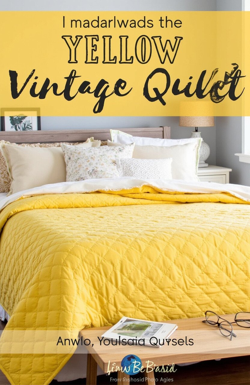 Cozy up with a yellow vintage quilt. It adds warmth and a touch of nostalgia to your bedroom.
