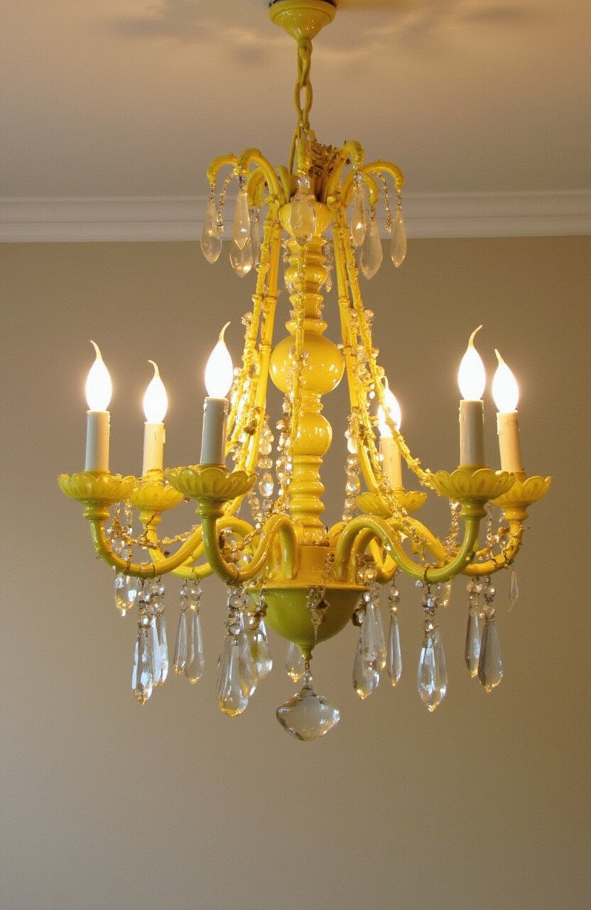 Chandeliers are more than just lighting; they’re art. A yellow chandelier can be the focal point of a room.