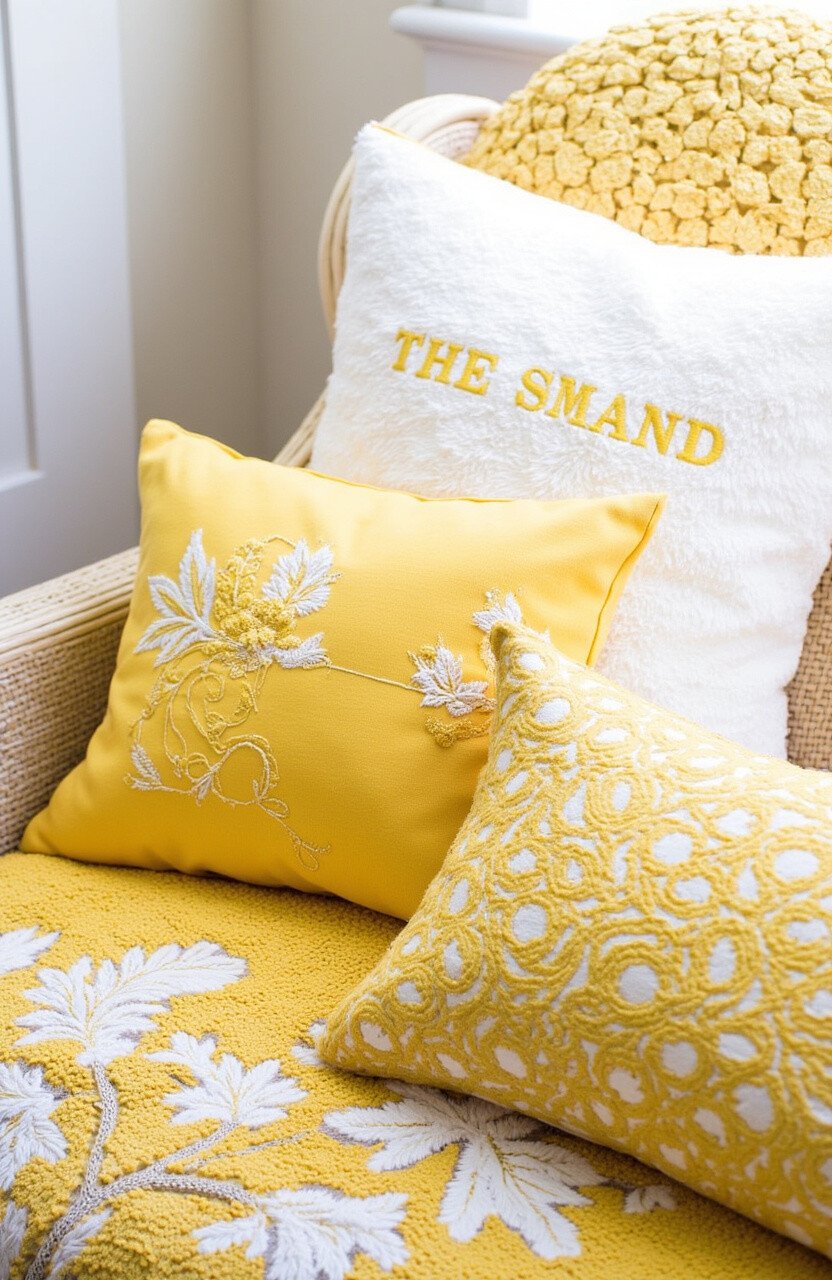 Nothing says comfort like a pile of plush throw pillows. Choose ones with intricate patterns or embroidery in shades of yellow to create a cozy, inviting space.