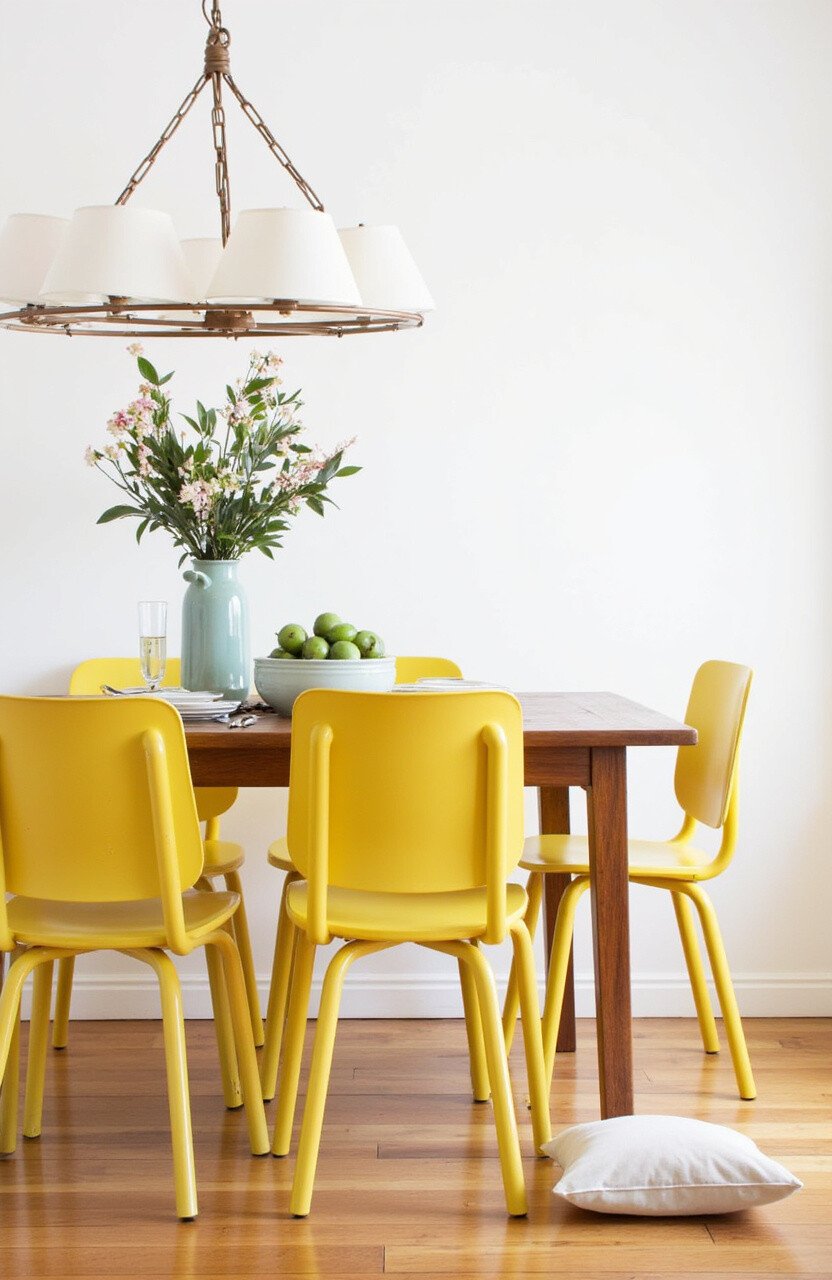 Chairs are essential, but they don’t have to be boring. Yellow chairs can liven up a dining room, making it feel welcoming and lively.