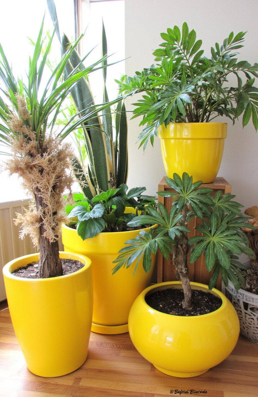Give your plants a cheerful home with retro yellow planters. They add color and life to your indoor garden.