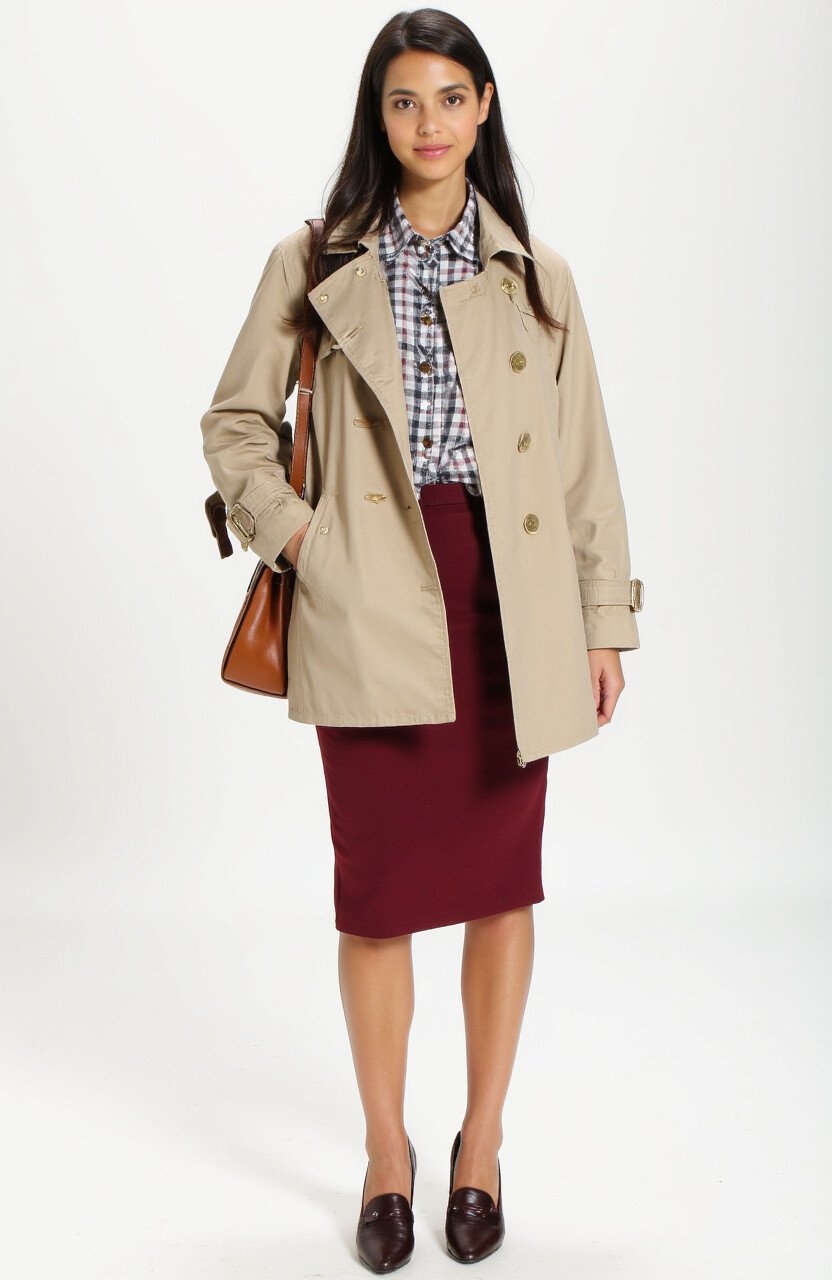 A trench coat is a classic piece that never goes out of style. Paired with a pencil skirt, it creates a sophisticated look. This outfit is perfect for work or formal events.