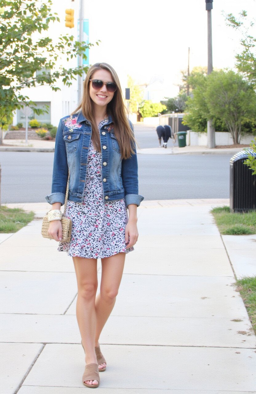 The denim jacket adds a casual touch to any preppy outfit. Paired with a floral dress, it creates a fresh and youthful look. This outfit is perfect for spring or summer days.