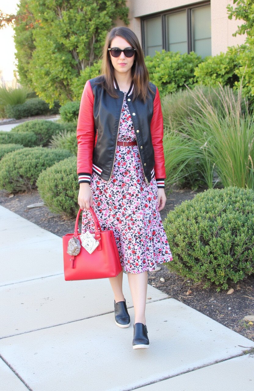 A bomber jacket adds an edgy twist to preppy fashion. Pair it with a midi dress for a unique and stylish look. This outfit is perfect for those who love mixing styles.