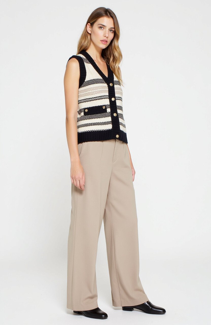 A knit vest is a unique and stylish addition to any preppy wardrobe. Pair it with wide-leg trousers for a modern, elegant look. This outfit is perfect for those who love layering.