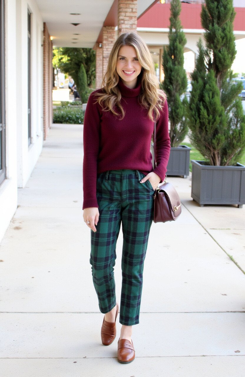 The turtleneck sweater is a classic piece that exudes elegance. When paired with plaid pants, it creates a chic and sophisticated look. This outfit is perfect for those who love a bit of pattern in their wardrobe.